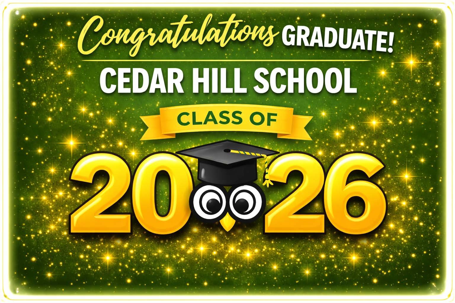 Show your pride in your fifth-grade graduate to your neighborhood with a lawn sign! To order, complete this form by April 24. Signs will be ready for pick-up at Cedar Hill mid-May.